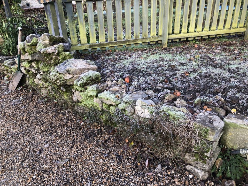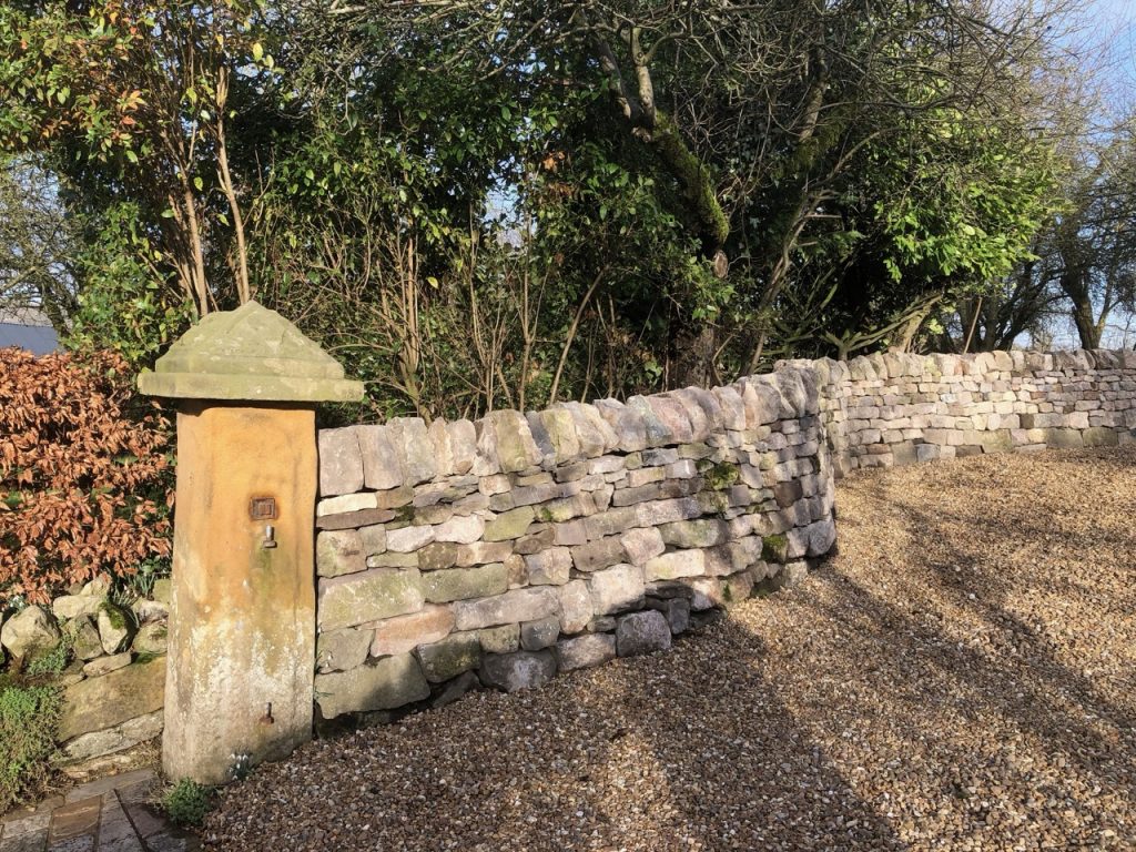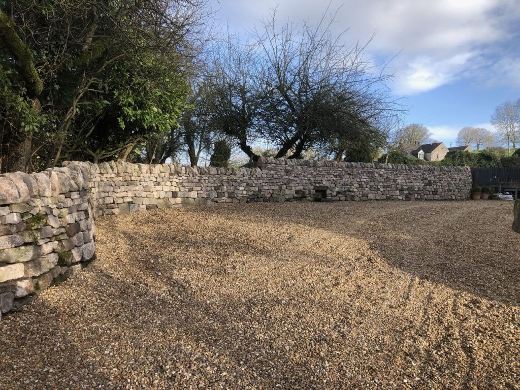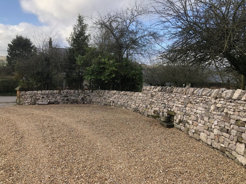 A small, dilapidated garden wall was the basis for this wall which was rebuild with extended height. Reclaimed limestone was ordered to supplement the existing stone.