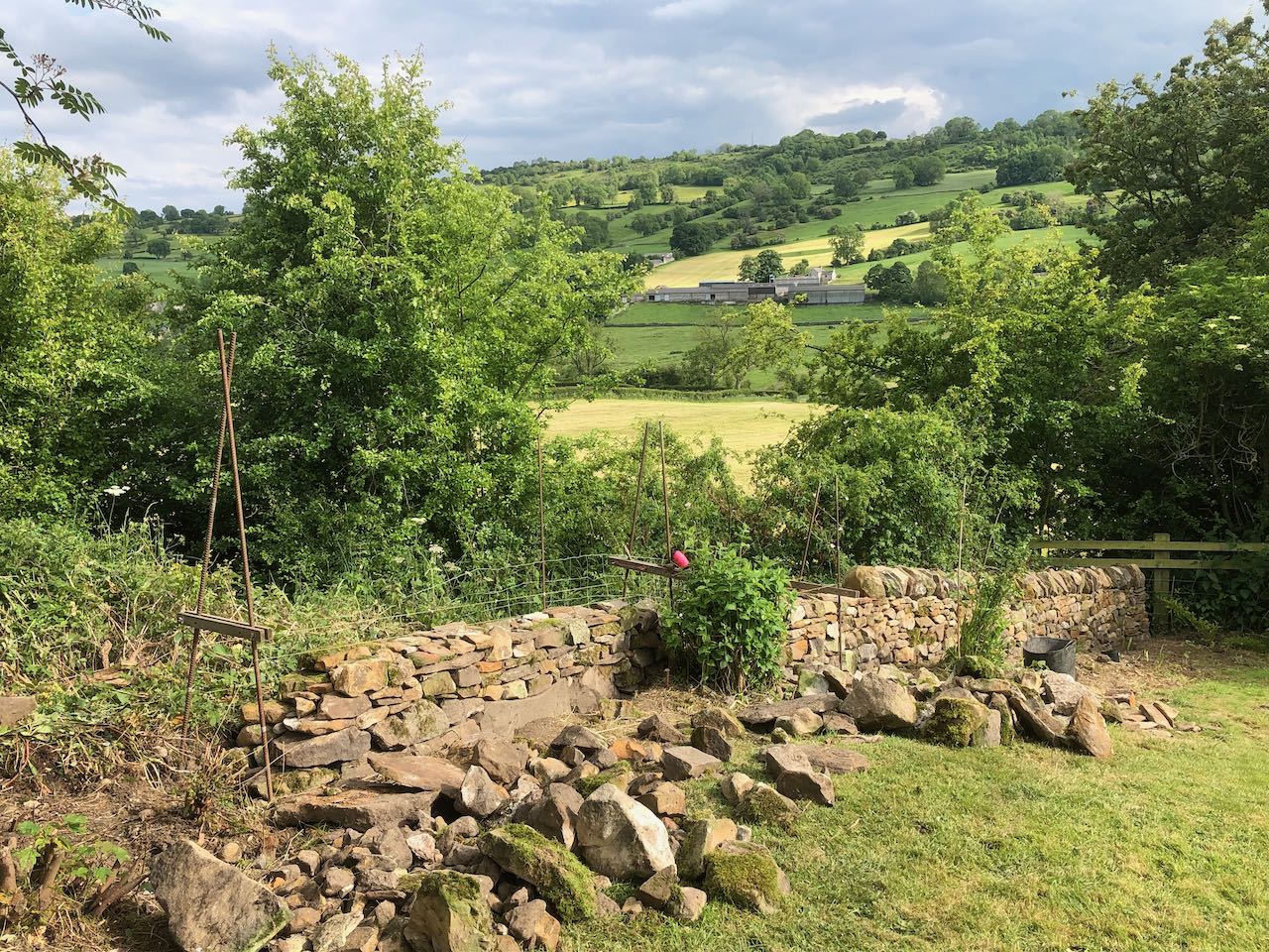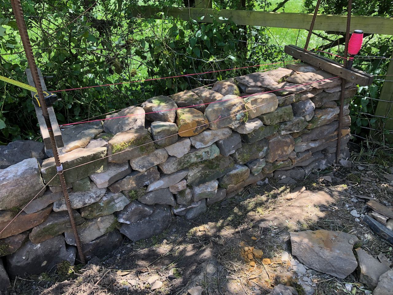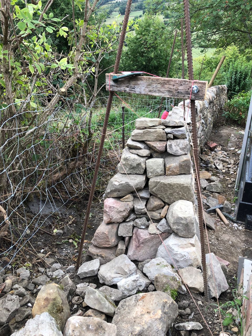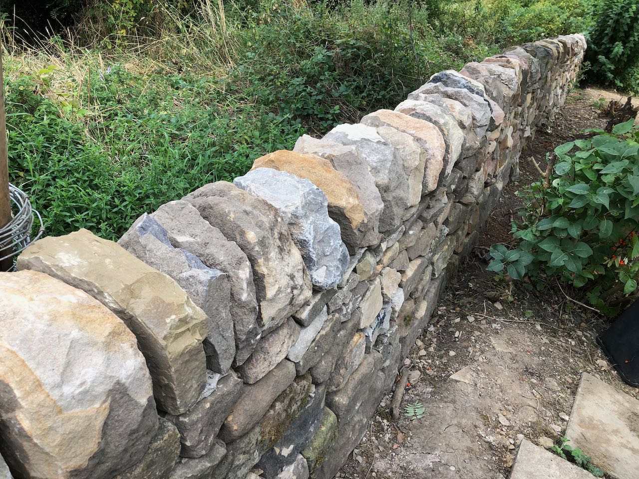 This newly renovated house has a garden boarding farmland. There was therefore an old drys stone wall that had become derelict and the owner was keen to restore it. It included a quite steep section that needed particular attention.