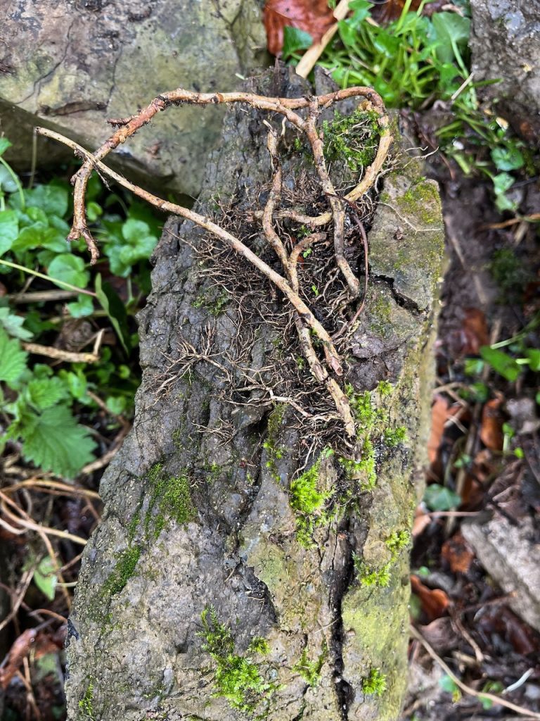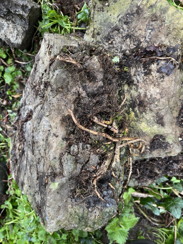 When it gets a grip, it grows through the gaps in the wall and gradually takes over. Its roots will even find tiny fissures in stone and grow into them. The stems thicken and expand into gaps. Organic matter starts to accumulate and create soil. Add to that a dose of winter freeze-thaw to expand the moisture in those little cracks and the wall is under attack. The stones in these pictures were falling apart after years of ivy abuse.